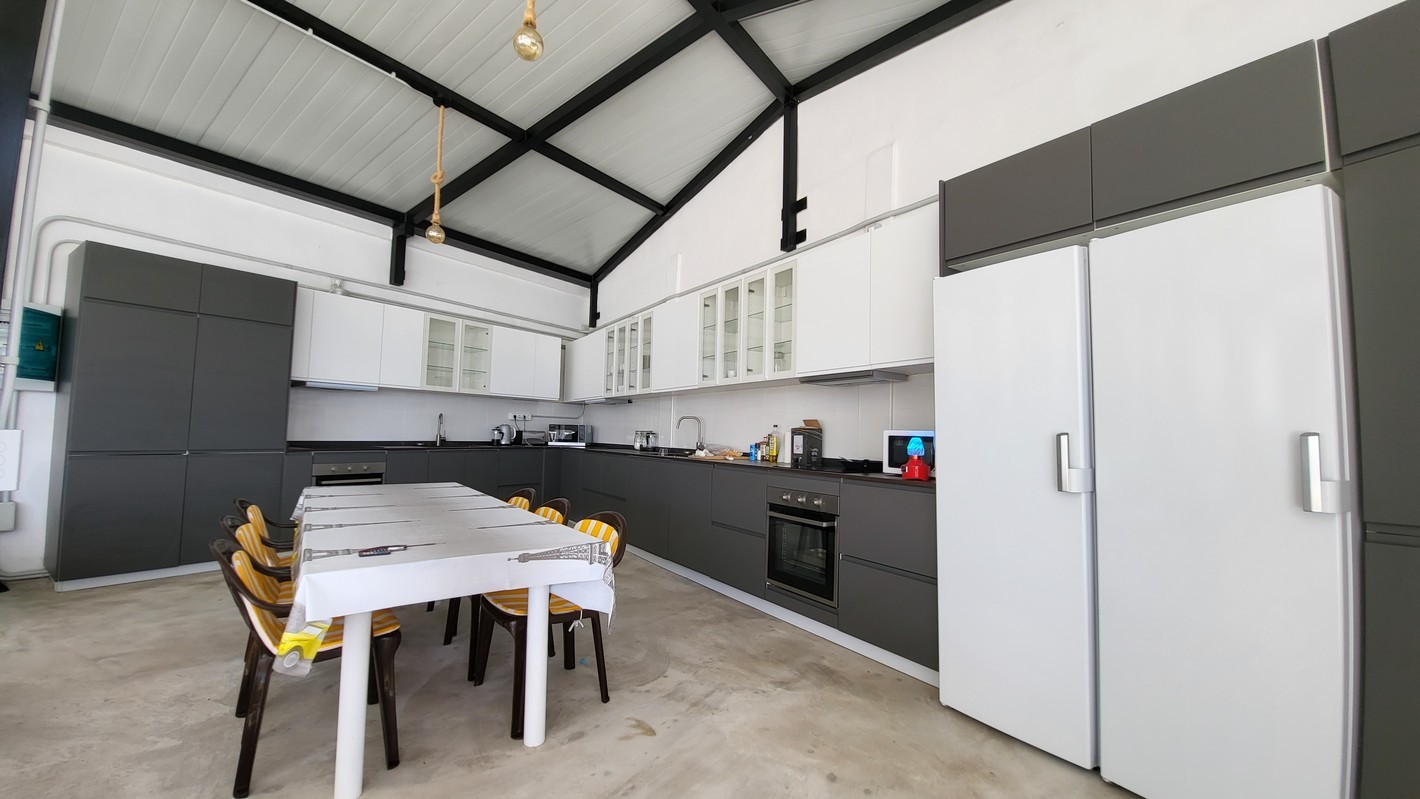 Spacious shared and private rooms with bathrooms, each bed with curtains and a plug for added privacy. Our fully equipped kitchen has everything you need. The highlight? The terrace—perfect for relaxing, enjoying meals, barbecues, or playing instruments, all while soaking in the island’s relaxed vibe.